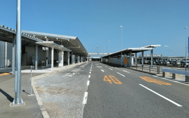 空港ビル東側、モノレール駅舎の下にある「送迎スペース(Picking up/Drop off)」での待ち合わせとなります。外に出られる10分前ほどにLINEまたはお電話をいただければ、タイミングを合わせてお車を回します。